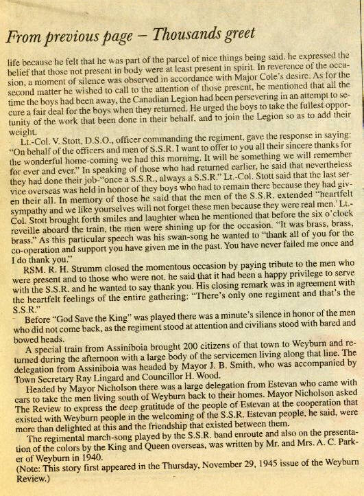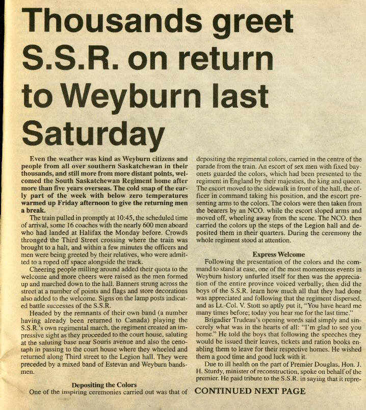 Thousands greet S.S.R. on return to Weyburn last Saturday