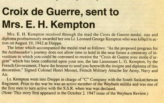 Croix de Guerre, sent to Mrs. E.H. Kempton