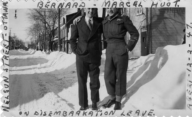 Letter of Transmittal Hi Greg, I finally had time to scan my grand-father's pictures. I loaded the files, in their original large size, onto Picasa. You can view and download the pictures off of : http://picasaweb.google.ca/clafontaine/Marcel?authkey=Gv1sRgCNa9i9Hj49bfSA&feat=directlink I also included more recent pictures of Remembrance Day celebrations in case you might like to have them : http://picasaweb.google.ca/clafontaine/MarcelHuot?authkey=Gv1sRgCPv7tbjNvMuIGw&feat=directlink There are many pictures there so feel free to pick which ever ones you want. His name is J.C.M. Huot (for Joseph Cleophase Marcel Huot). We know him as Marcel Huot. My understanding is that he trained with a regiment in Quebec but when it was time to fight and go oversees, he was transferred to the South Saskatchewan Regiment. PS. Thank you for suggesting ebay for the SSR cap badge. I was able to buy one off ebay and received it in time to offer him the badge for Christmas. He was extremely touched and teary.