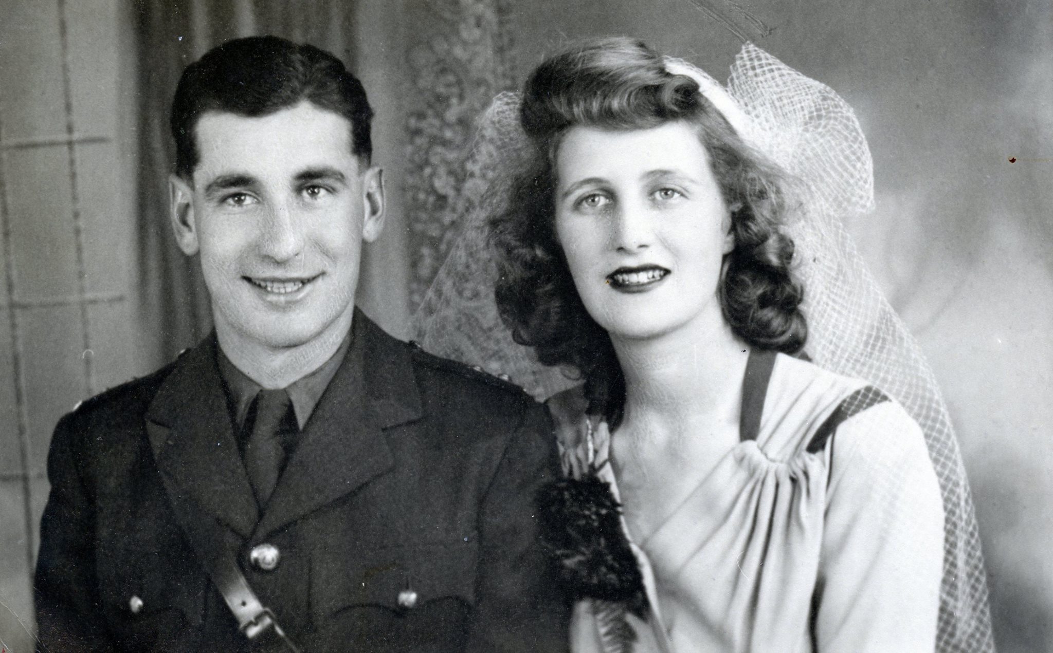 Wedding photo Wilson James Laird/Doris Patricia Halls, Lt 6 Sep 1944 Blackpool Lancashire after graduating from OCTU and prior to returning to S Sask R C Coy.