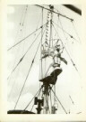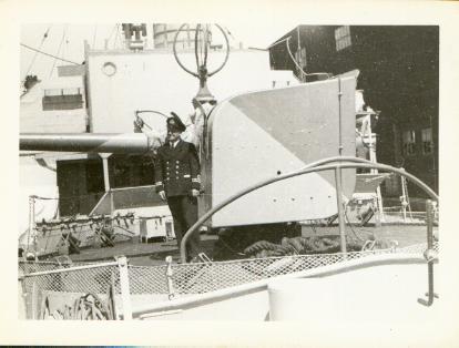 If you could send an attachment of the picture of the "T bird" up the mast I would appreciate it. Also a larger picture of the person standing beside the 4" Gun, I might be able to identify that person.