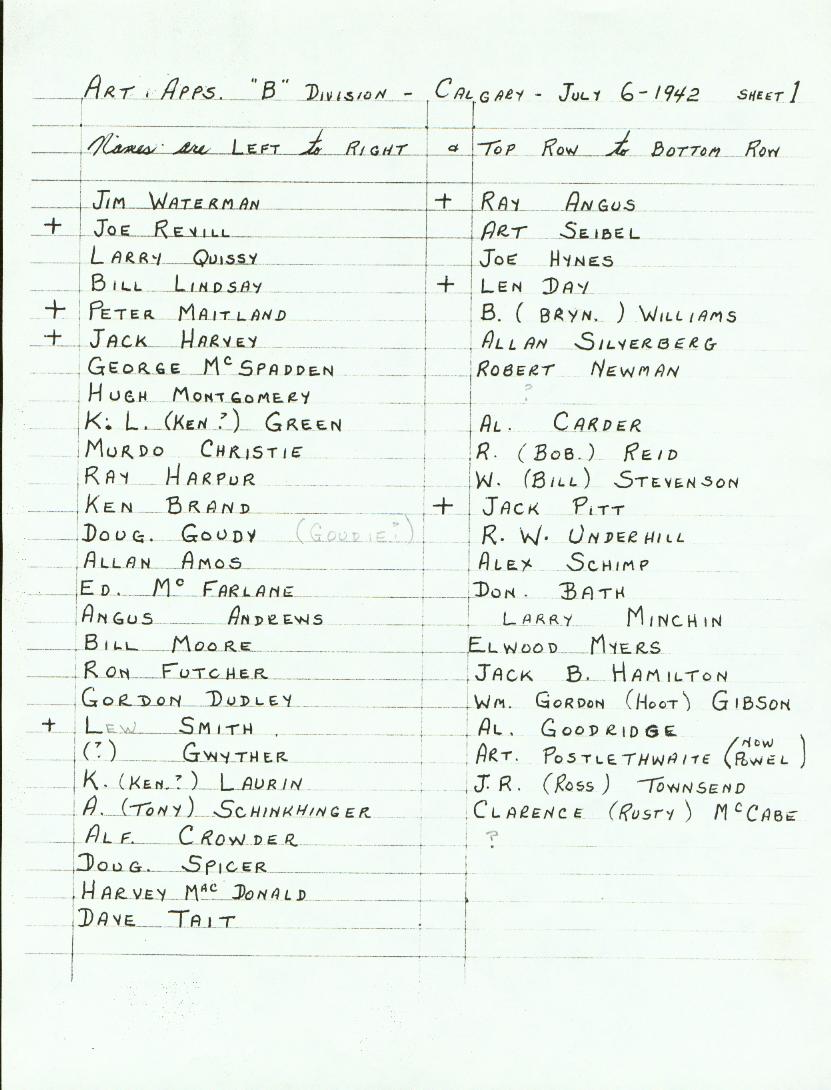Artificer Apprentice Course No 2 Graduating Class - also known as "B" Division, taken at Dominion Provincial Training Centre, Victoria Park, Calgary, AB - 6Jul1942 - right side