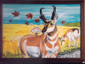 Photo of watercolour painting of Verrieres Ridge by David Devigne of Pessac/Bordeaux, France. This is the actual area where "D" Company objective was on 20Jul1944. "I supplied him with a photo of the same area, and also Battle Map of the day with all the reference point." - PT Maule. Photo of painting on wall with horns belonging to PT Maule.