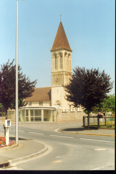 Pourville Church. SSR Plaque on right(note red crest on top of plaque). Plaque on left reads "This is where S.S.R. and Q.O.C.H. of Canada disembarked - 19-8-42. Jun2002