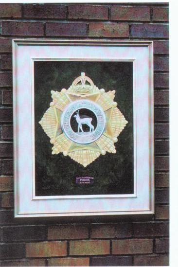 P.T. Maule holding SSR Cap Badge oil painting.