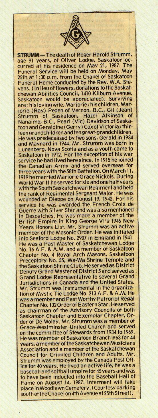 Image 105 - Obituary notice. Strumm. 21May1987.