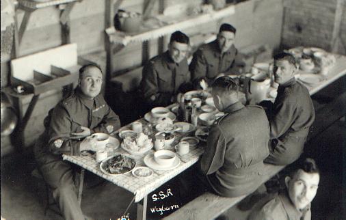 "Image 113 - Outside of SSR HQs, Weyburn: Photos taken January, 1940. When I showed photo to Les England in 1983 he wrote the names below the "kneeling group" for me. I had met them all with exception of S/Sgt Campbell.