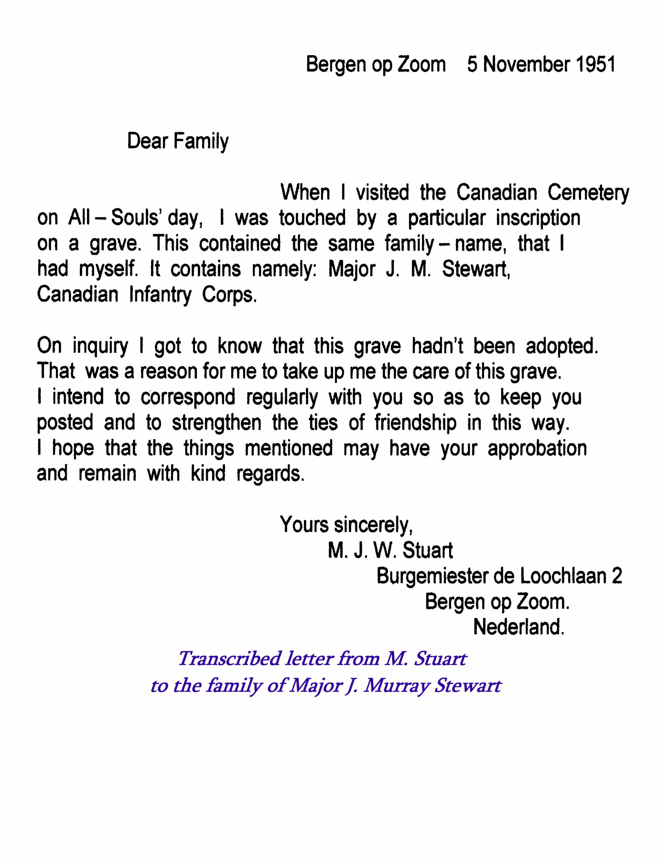 Transcription of above letter - 1951