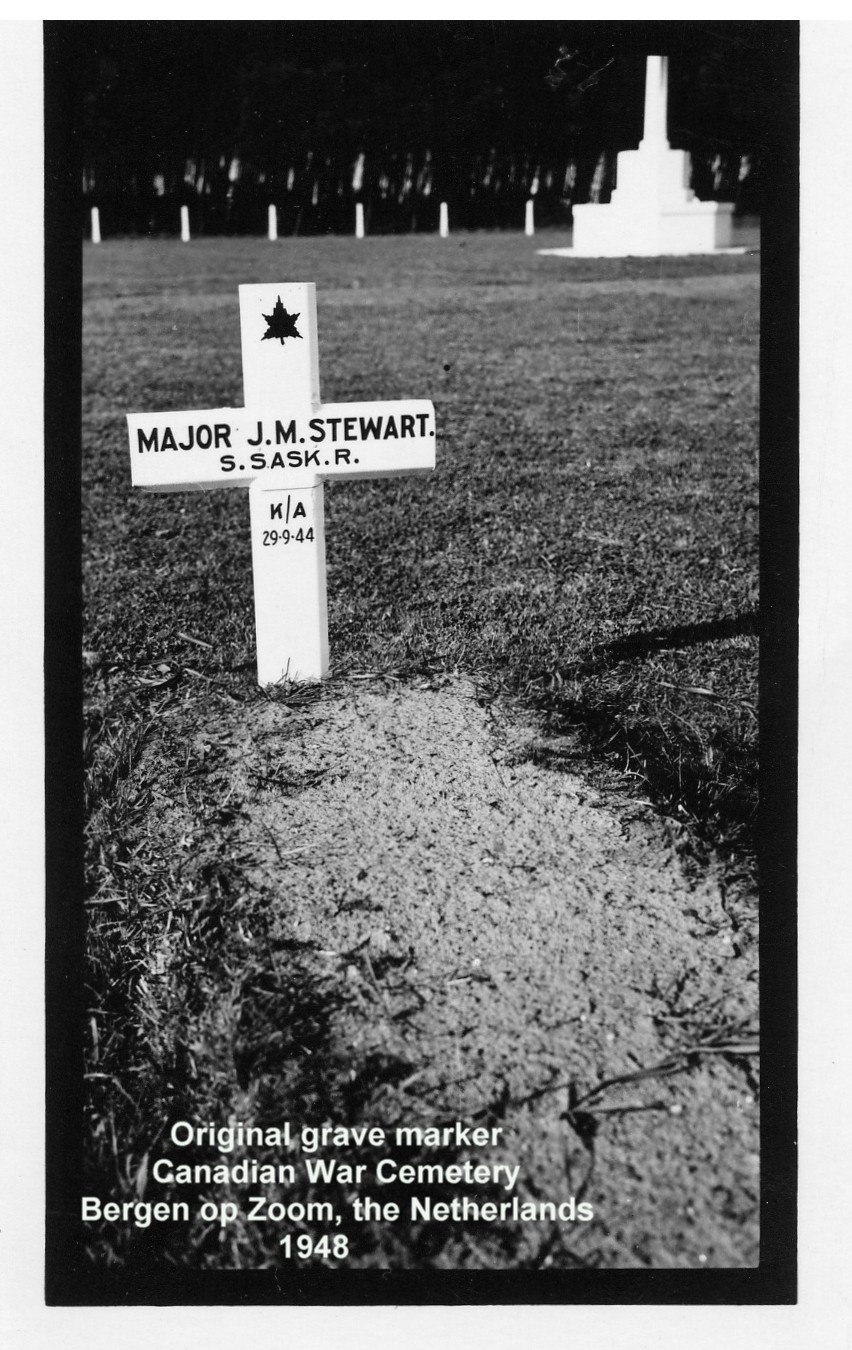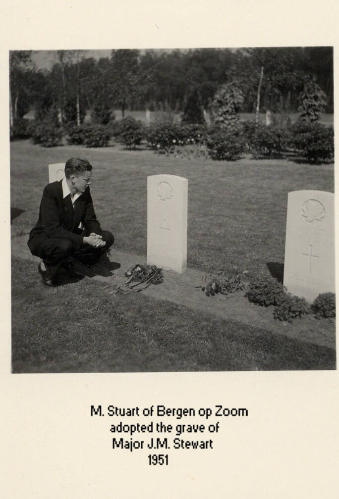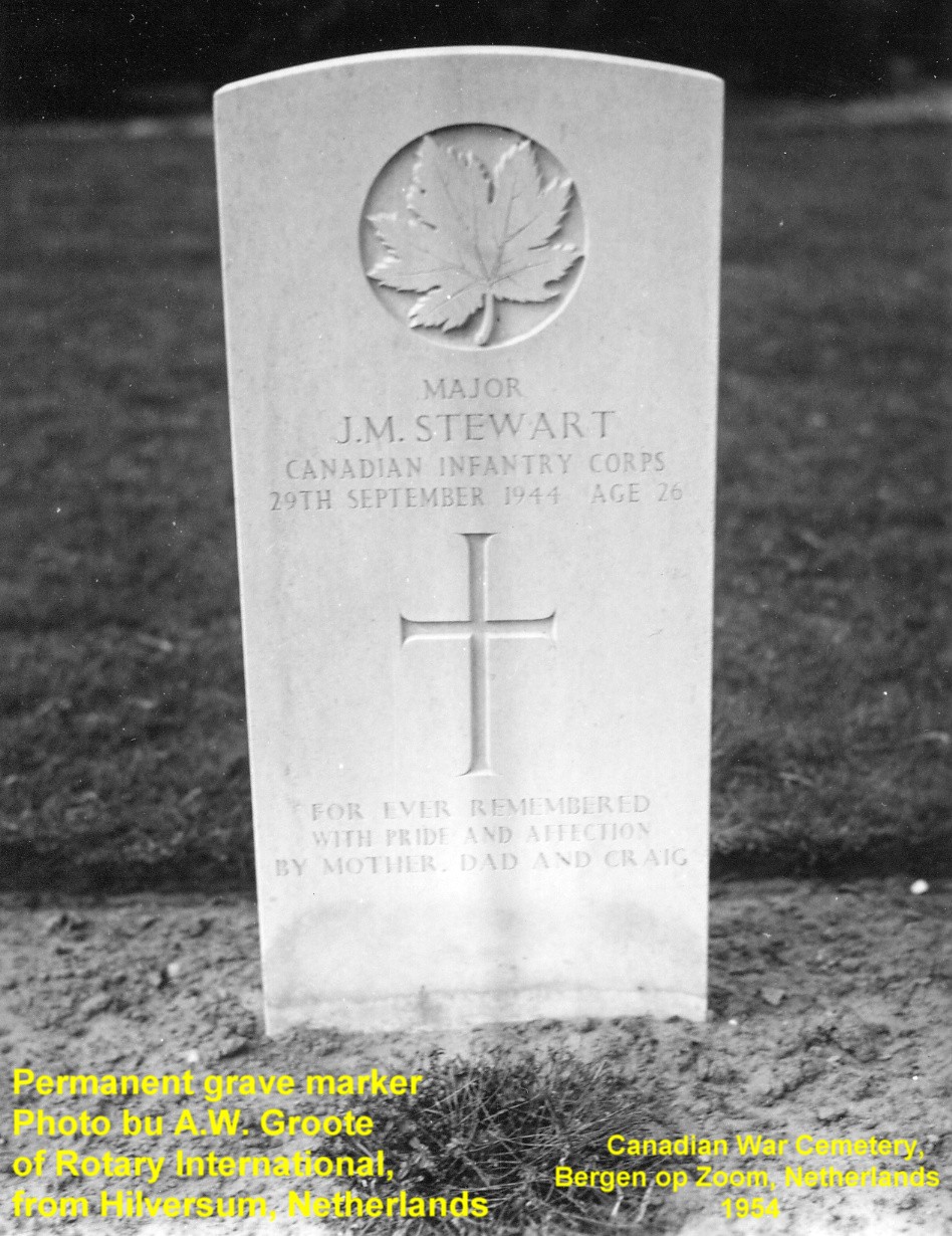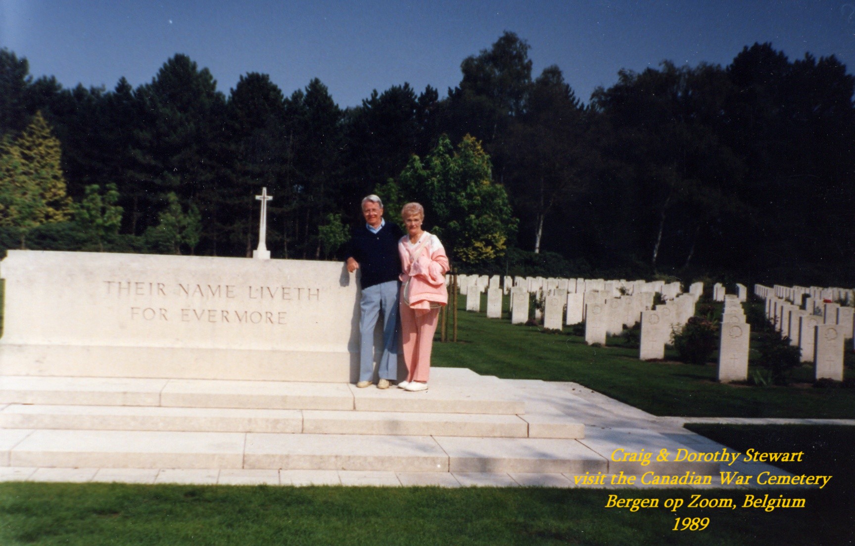 Craig Stewart, brother, and Dorothy Stewart, sister-in-law of Major Stewart, visit Canadian War Cemetery at Bergen op Zoom - 1989