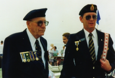 Hank Turner was in the Raid on August 19, 1942. He was one of the few to get back to England. Hank was a driving force for many years, in the South Saskatchewan Regiment Assn., at Weyburn, SK. For the last several years of his active involvement with the Association, he was the Secretary-Treasurer. Hank is pictured with his son, George, who accompanied his father on SSR Tour ’92.