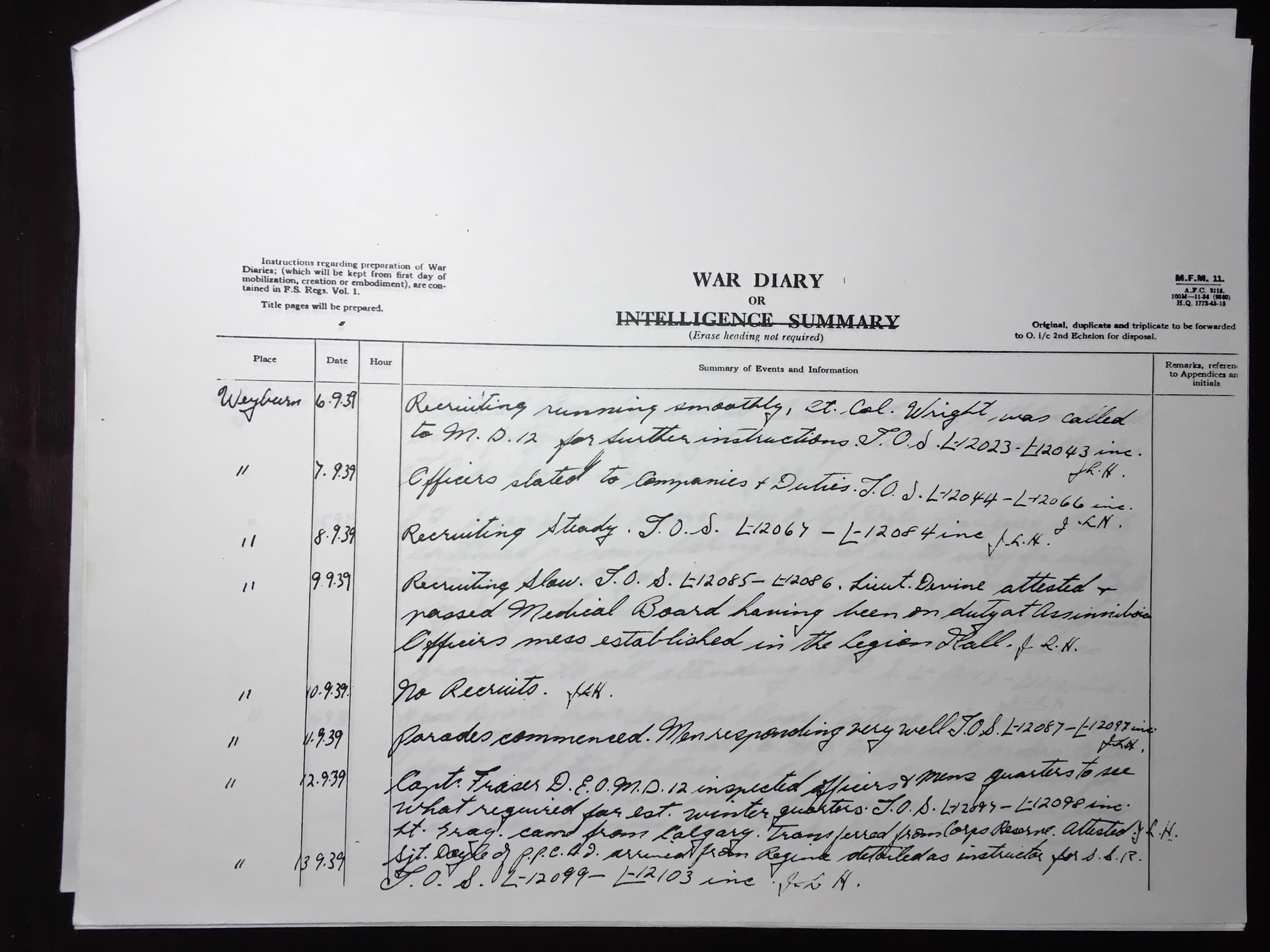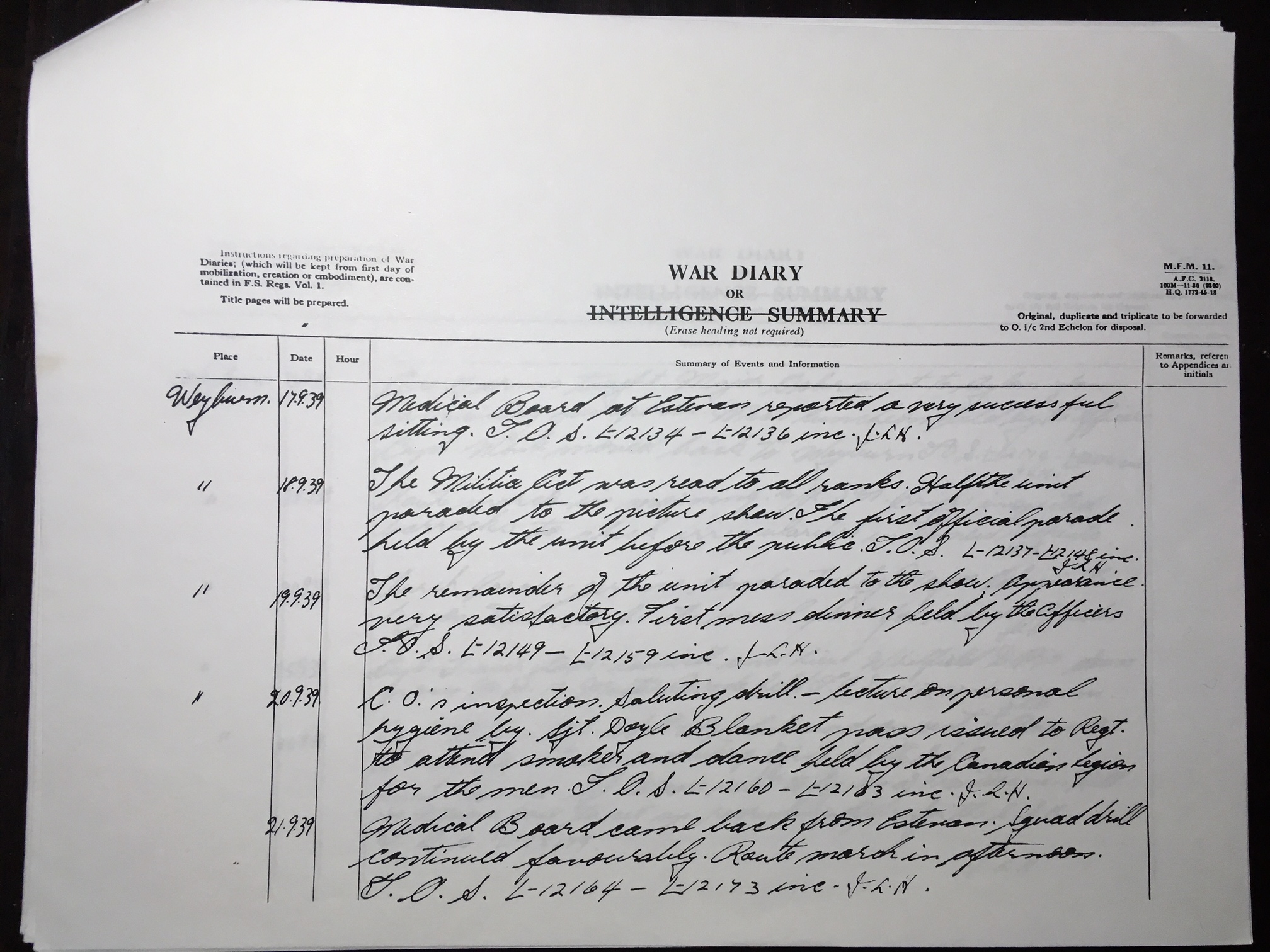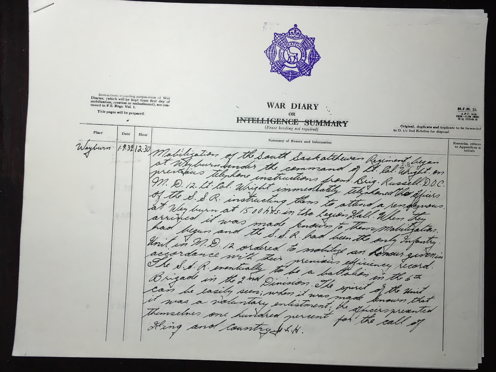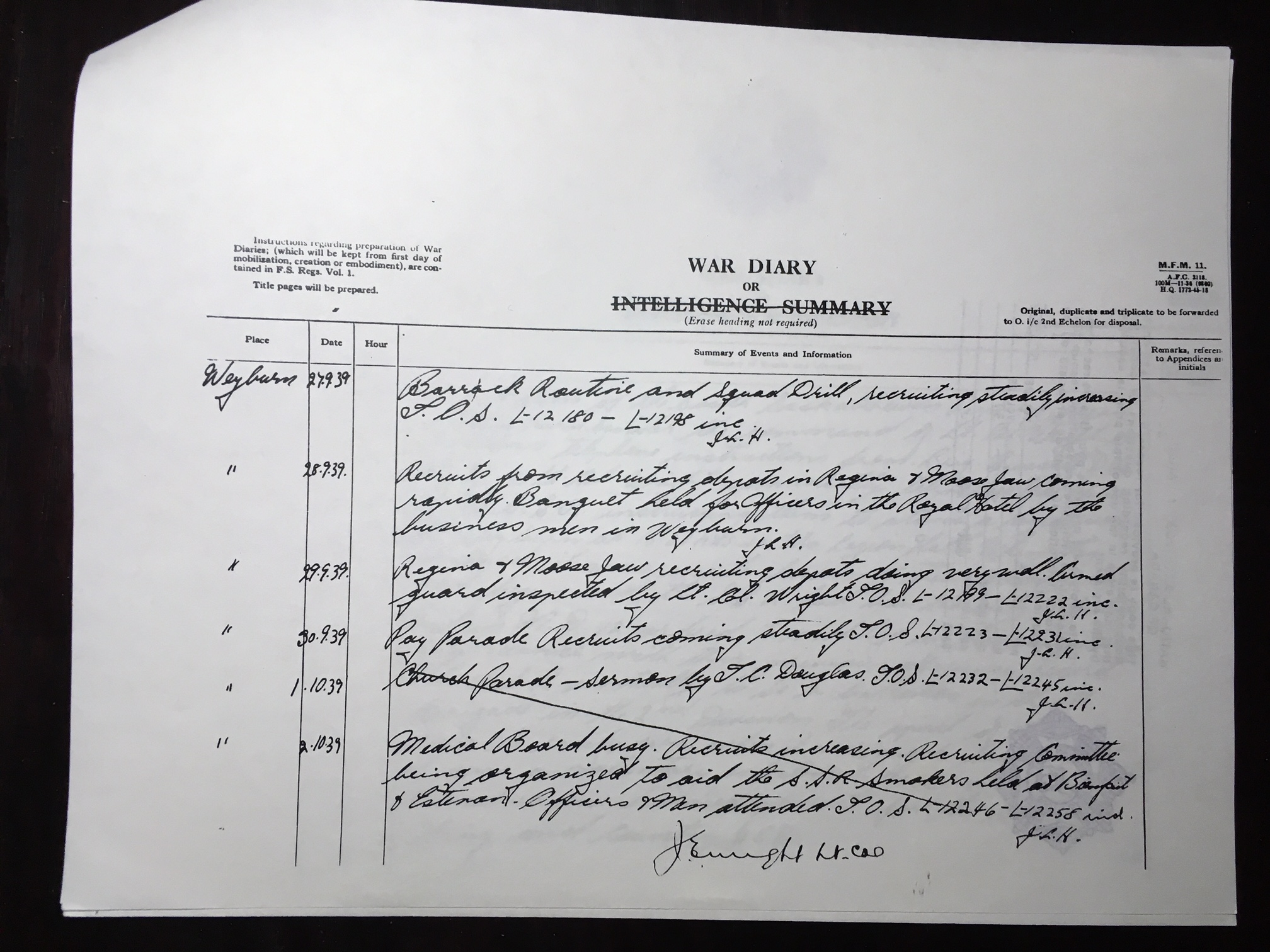 1-30Sep1939 - Mobilization in Weyburn, Saskatchewan. (War Declared 10Sep1939.)