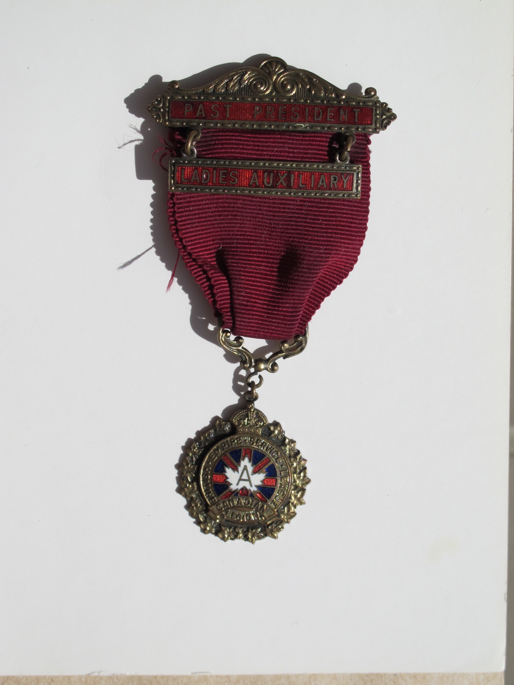 Alf Garvin's wife (my mother) medal inscribed 'Past President Ladies Auxillary' on the front and inscribed Mrs. Agnes Lavine Garvin Craik (Sask-10) 1942-9