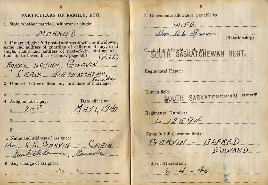 Documents held by Alf's son, me, Terry Garvin of Calgary, Alberta: