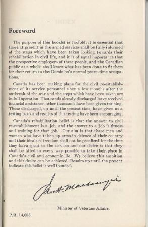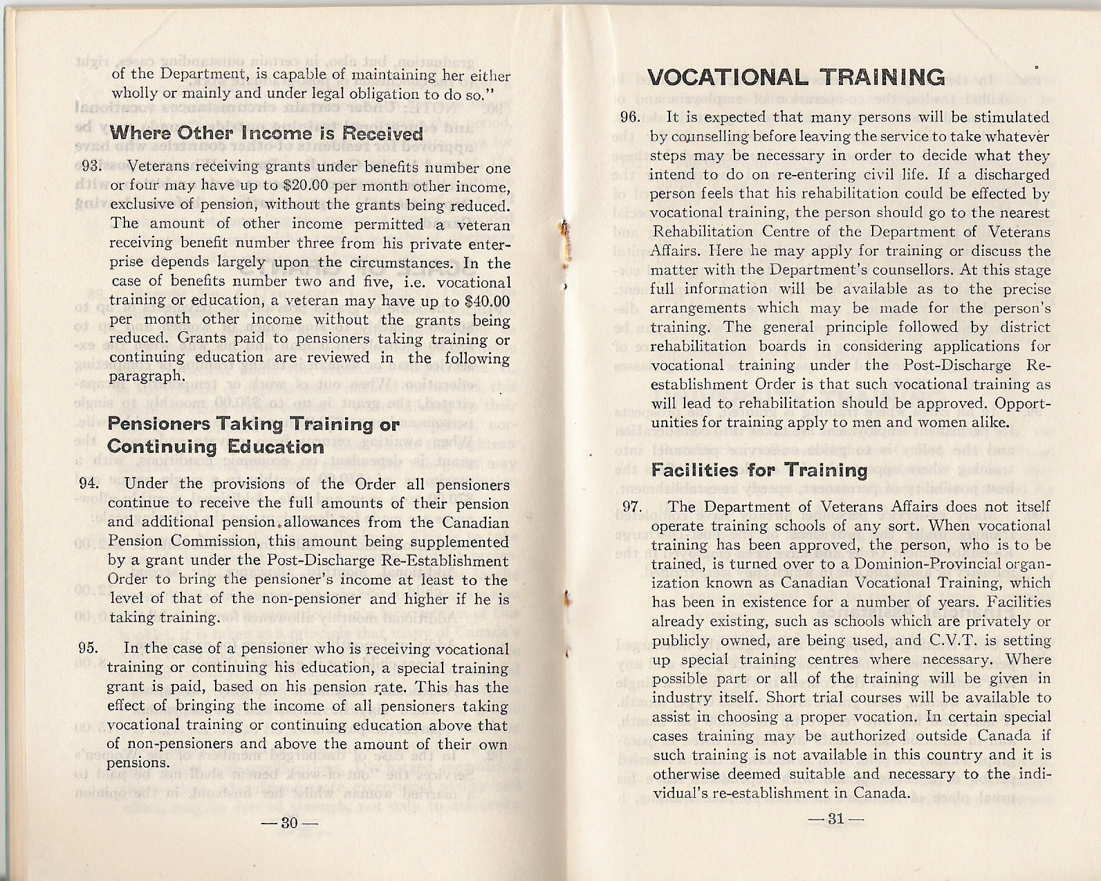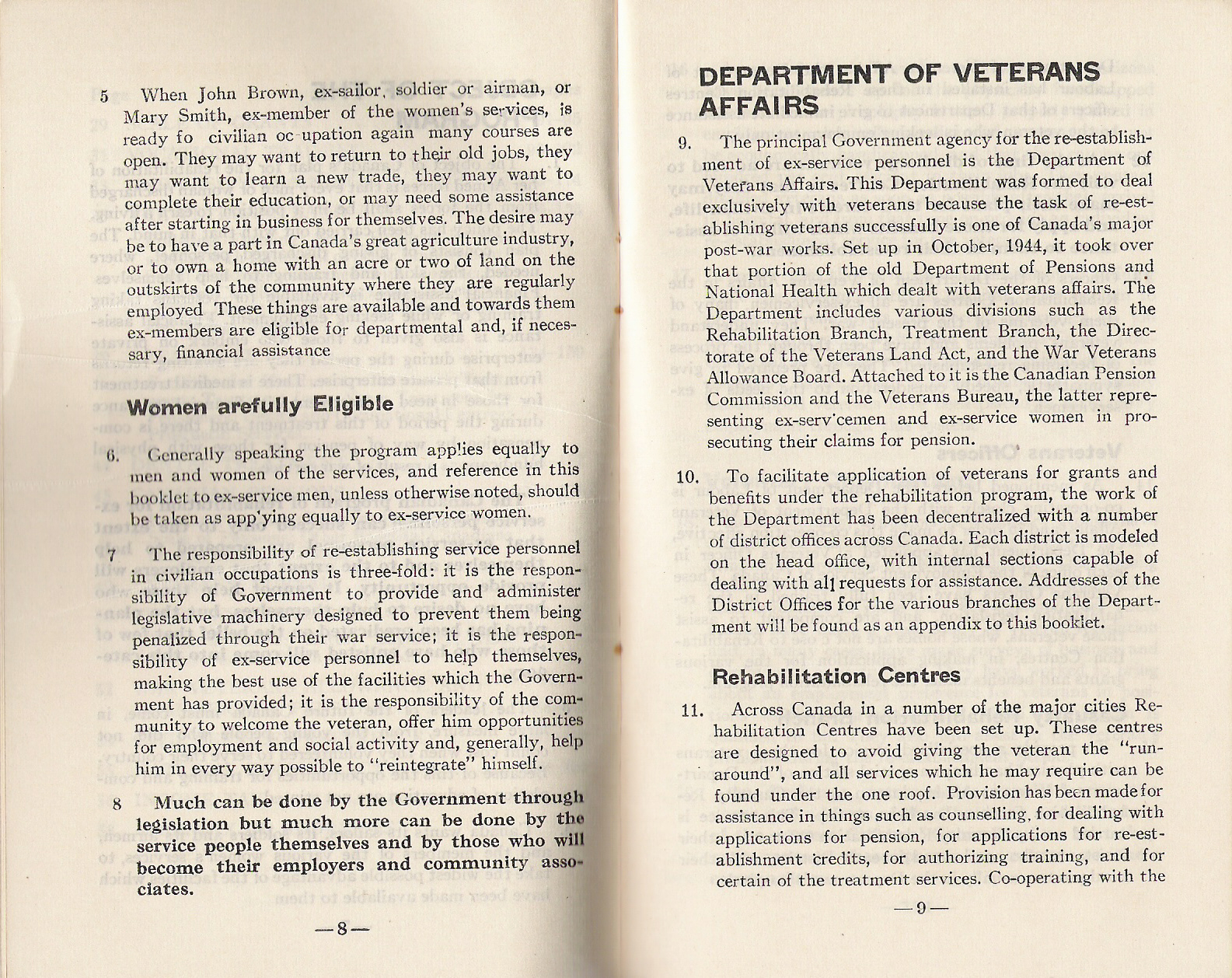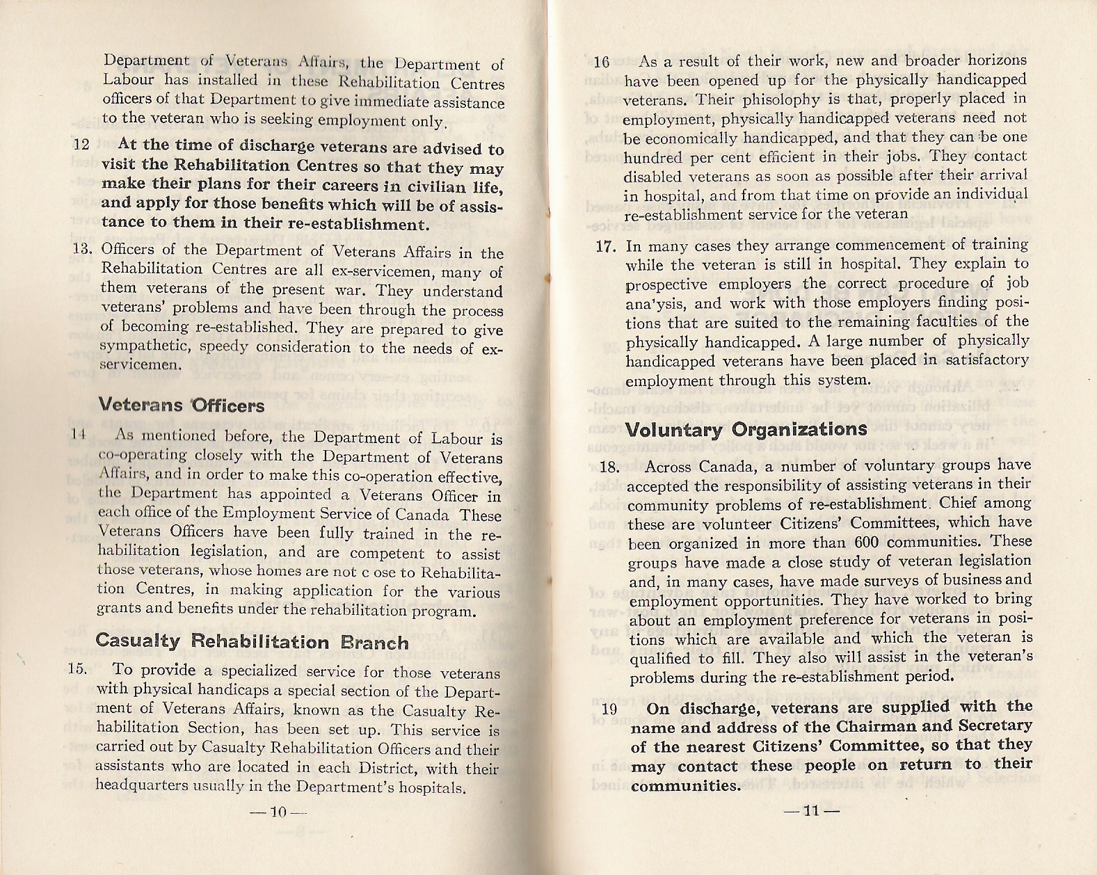 of Steps Taken for Civilian Rehabilitation of Those Who Served