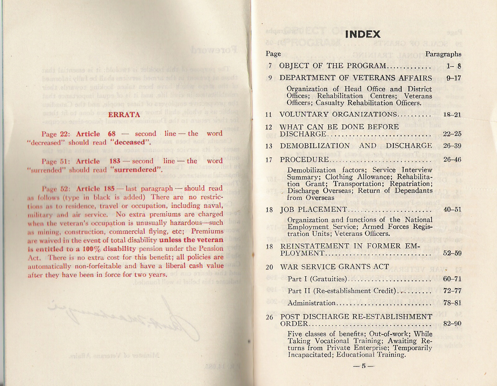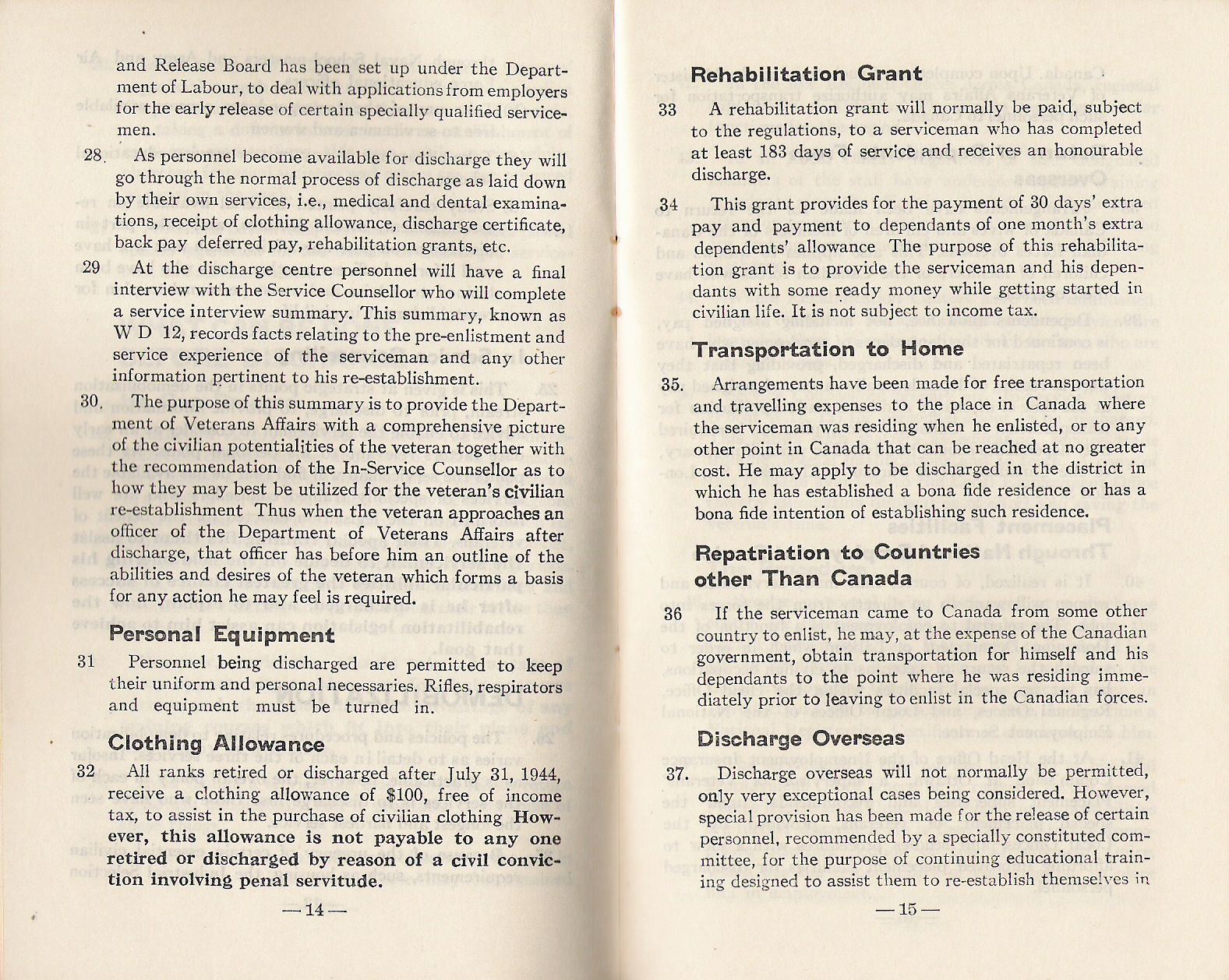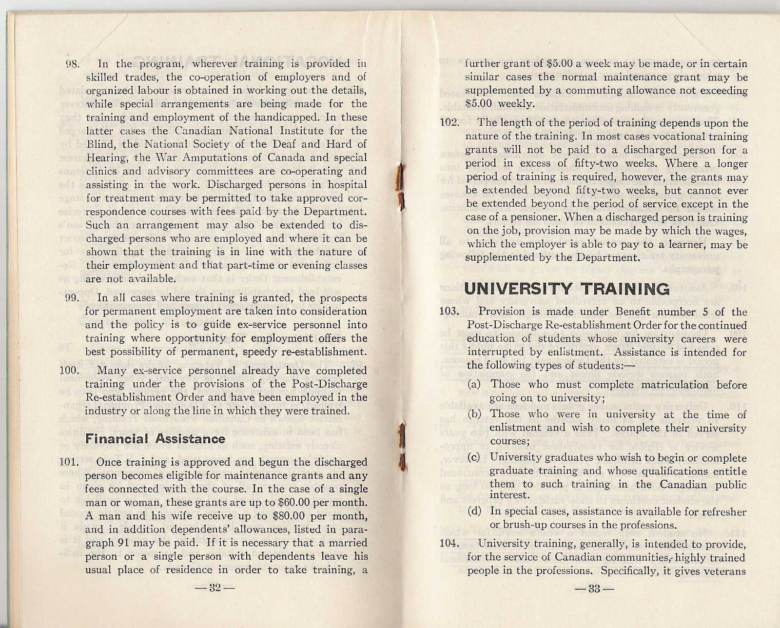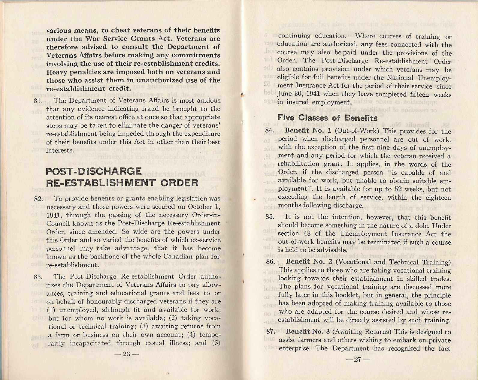 of Steps Taken for Civilian Rehabilitation of Those Who Served