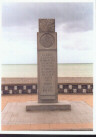 The first Dieppe Memorial placed there by Prime Minister MacKenzie King on 18 August 1946. It is located near west end of White Beach in vicinity of the Casino. The RHLI & Essex Scottish suffered many casualties when attempting to take the Casino (see map, above). Described as "round white ball with Red Maple Leaf in center" with 'Canada' below, and a brass plate inscribed with date of presentation. MacKenzie King also placed the one on Green Beach on 18 August 1946.