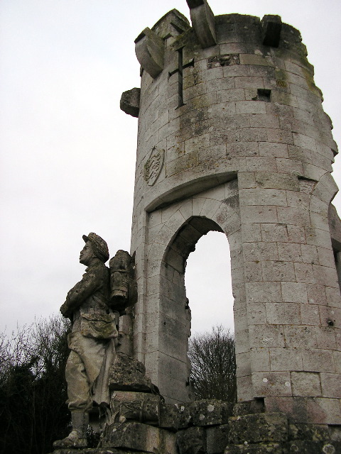 Forêt de La Londe area. The 1870's war memorial. Through the ages, the forest was always a battlefield. This is not a real ruin, just a memorial erected to commemorate the fierce fights of 1870-71 against the Prussians. After the main battle, French infantymen stayed hidden in the forest and ambushed the Prussians during one year. There is still the lonely grave of one of these brave men, in the heart of the forest.