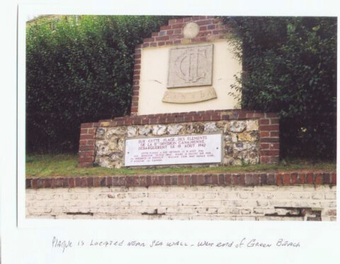 marks the landings on Green Beach, of the Dieppe Raid, 19-8-42.