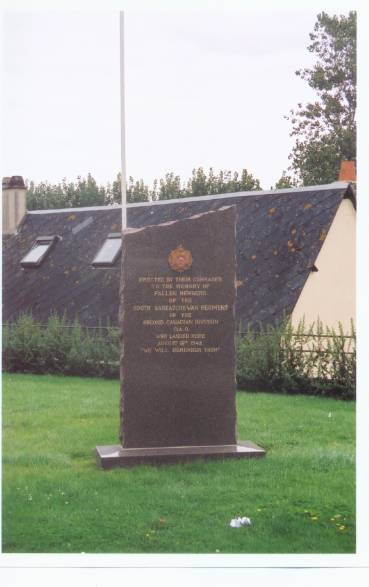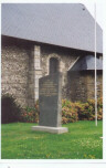 Pourville Church. SSR Plaque on right(note red crest on top of plaque). Plaque on left reads "This is where S.S.R. and Q.O.C.H. of Canada disembarked - 19-8-42. Jun2002