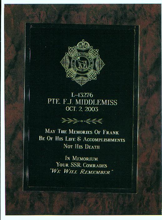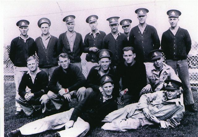 1 Photo taken in the fall of 1939. Left to Right: Front Row; unknown, unknown, Jake Wetch, unknown, J.C. Jim Blencowe, Jimmy MacDonald, unknown, unknown. Middle Row; Alex MacDonald, Mike Dzuba, Frank Nieviadomy, unknown, unknown, unknown. Back Row; Jack Watchman, unknown, unknown, J.A. "Red" Warrow, unknown, unknown. Two members wearing Weyburn Regiment Cap Badge, remainder wearing Saskatchewan Border Regiment Badge.
