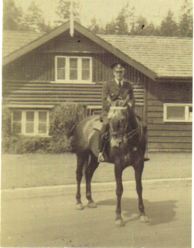 1. Postwar Photo - I was living out near he Vancouver Air Port. (Richmond) had five acres of property, Model A Coupe, and drove 15 miles to west side of Vancouver where Police Stables were located. Was a bit on the skinny side (still getting over my overseas "tour").