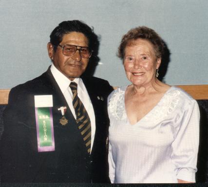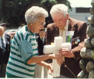 37 Barbara Lawrence, widow of Gge Lawrence accompanied by Herb Rohs laying wreath for Widows 1992