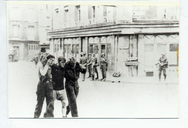 3 German soldiers with wounded prisoners walking - Dieppe