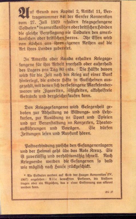 Safe Conduct Sheet - back - dropped at Falaise by allies for Germans.