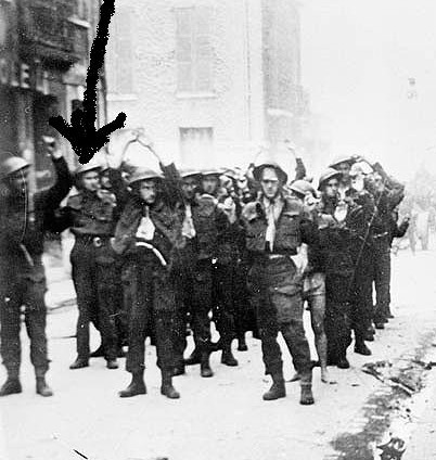 I know that she had being seeing a soldier in Sunderland from my birth family that I managed to trace but she would not reveal his name. However in the records of the home she had given information to her case worker that my Father was a Canadian soldier by the name of Jackie Spoon and that he was about 26 years old. I have searched and searched but have been unable to find anything on Jackie Spoon. I began to think that he had given her an incorrect name. I did find a photo of Dieppe prisoners and a young man stood out as he was the very double of my eldest daughter and even stood like her. I will forward this on to you as I have put him under a rather large arrow. Then looking at anything concerning Canadian soldiers I came across a Herman Keys interview in which he mentioned Casey Arnold and his brother Jackie and also of a group photo taken in England of Company B of the South Saskatchewan Regiment and I am sure that the same man is there...there is also someone rather like him and wondered if they were the Arnold brothers.