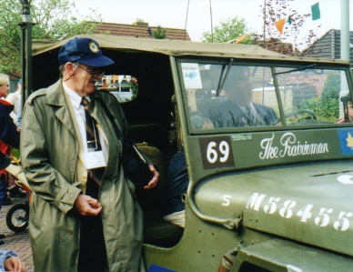 Cec E. Law, as a Captain, was Platoon Officer, 3 Platoon (Mortars) for the last several months of the war. Later he became a Major. In Thesinge, Holland (near Groningen), he checks out a "Keep It Rolling" jeep with the SSR TAC number "69" on it. The jeep is also aptly named, "The Prairieman." Keep It Rolling is a group of Dutch hobbyists, who have restored all kinds and sorts of WW II vehicles and as the name implies, keep them rolling.