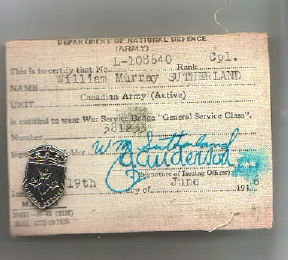 All Active Service members of the Canadian Military from WW II, as opposed to conscripts, received one of these badges on Discharge. It was to be worn as a civilian to indicate that the wearer was on Active Service (General Service Class) during WW II. The badges have a serial number and the wearer was to carry the wallet card, when wearing the badge, to confirm rightful ownership of the badge. The badge is shiny silver but regrettably the scanned copy of the badge, reproduced as black. - W.M. Sutherland.
